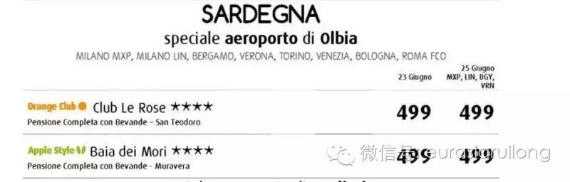 可从 Milano- Malpensa;Milano- Bergamo;Milano- Linate ; Verona;Torino;Venezia ;Bologna;Roma-Fiumicino;出发至 Sardegna-Olbia 机场。