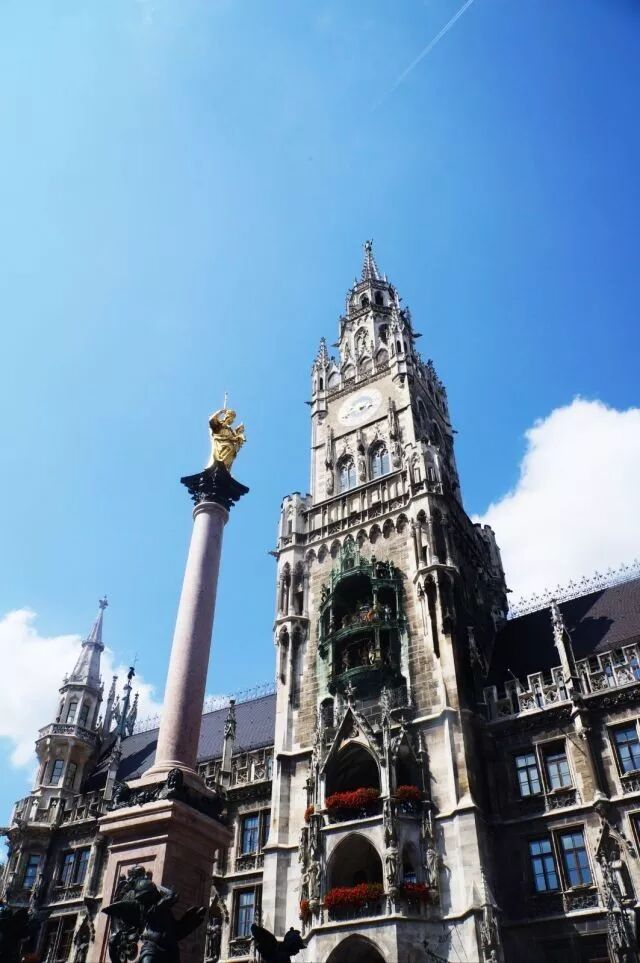 慕尼黑是德国巴伐利亚州的首府,是德国南部第一大城,全德国第三大城市。慕尼黑地区最早的居民点可以追溯到罗马帝国时期。但是慕尼黑城市的形成是在12世纪以后。在8世纪,这个地方出现了一个本笃会修道院,慕尼黑这个地名在德语中有“修道院之地”的含义。1158年是慕尼黑最早见于文献记载的年份,因而被推定为该市成立的年份。慕尼黑的中心广场——玛利亚广场是一个大型的开放式广场,得名于广场中心的玛利亚圆柱。慕尼黑旧市政厅(Altes Rathaus)和慕尼黑新市政厅(Neues Rathaus)都在这里。位于广场8号(北面)的新市政厅为哥特式建筑,高达85米的钟楼上,有一个华丽的壁钟,这台壁钟有与真人一样大小的玩偶表演。传统上,慕尼黑的特产巴伐利亚白香肠(Weißwürste)。慕尼黑以其酿酒厂和白啤酒(小麦啤酒,Weiß Bier)著称。金色半透明的Helles是今日慕尼黑最受欢迎的啤酒,这种啤酒不算古老,始于1895年。而19世纪慕尼黑最受欢迎的啤酒则是慕尼黑黑啤酒,其暗色来自于烧焦的麦芽。烈性浓啤酒(Stark Bier)是慕尼黑最烈性的的啤酒,酒精度达到6-9%,呈暗琥珀色,有浓重的麦芽味道。  德国新天鹅堡