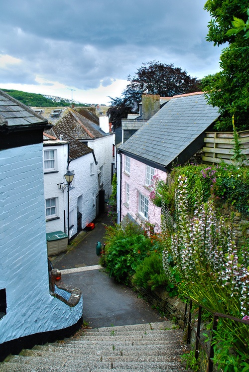 福伊Fowey小镇是一个很小但非常美的海边小镇,小镇傍山而建,山上依序排开一溜一溜粉彩色的尖顶小屋。路边种了许多极大簇的绣球花,天阴,显得花瓣更蓝,叶子鲜亮油绿。山下海湾里泊着无数的白色小游艇,如乱叶浮水。