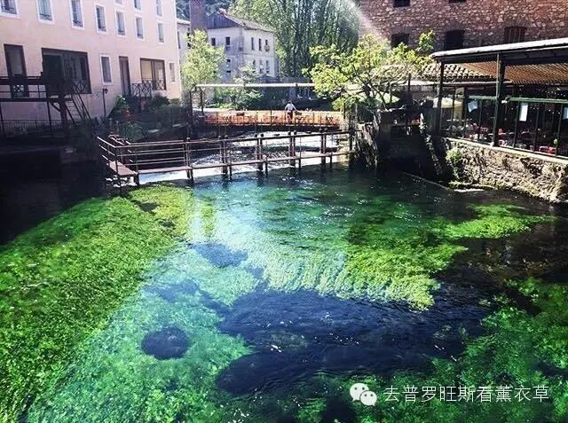 泉水小镇是一个座落在碧水流淌,青山环绕之中的世外桃源。它是法国最大的泉涌,世界排名第5位,每年泉水的流量有6亿3千万立方米之多。整个小镇都是绕河而建的,穿过小小的隧道转到山后,一弯山涧横入眼帘。对面笔直的六棵松树一字排开,直指山顶的古堡遗迹。