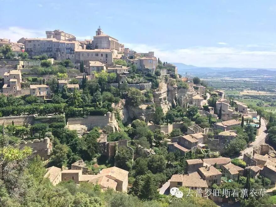 红色是红土城的主色调,当地居民更是给自己的房子穿上各式的颜色,使这座小镇在不同的颜色中跳跃。窗台下的花盆,拐角的鲜花,再配上环抱着中世纪围墙的浓绿松树和路边自在摇曳芬芳的蓝紫薰衣草,在普罗旺斯纯净得没有一丝杂质的碧蓝天空和洁白云朵映衬下,无需渲染,已然就是一幅梦幻般的水彩画。