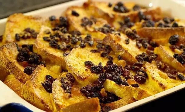 非常传统且典型的英国点心,看名字就可以知道主要是什么,除了Bread and Butter,还会加上牛奶和鸡蛋,有时候还会加上面提到的Custard,然后一起进烤箱。