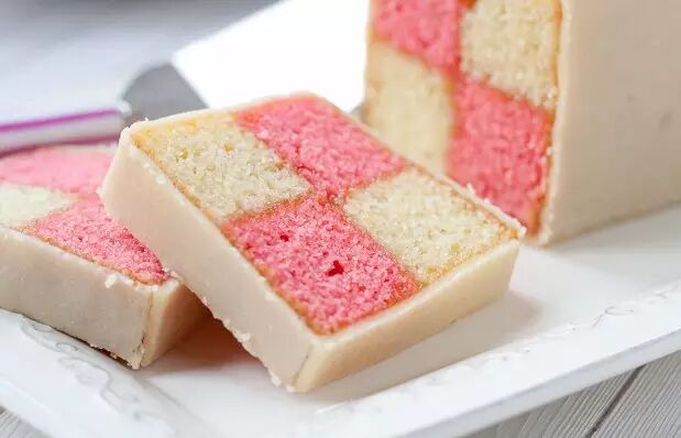 Battenberg Cake 杏仁糖海绵蛋糕,棋格状,色彩斑斓,1884年维多利亚女王孙女大婚时首创。