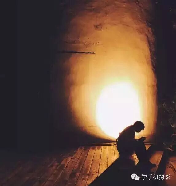 ▲ 坐在路边的人,背后的地灯衬托着烛光中的人影