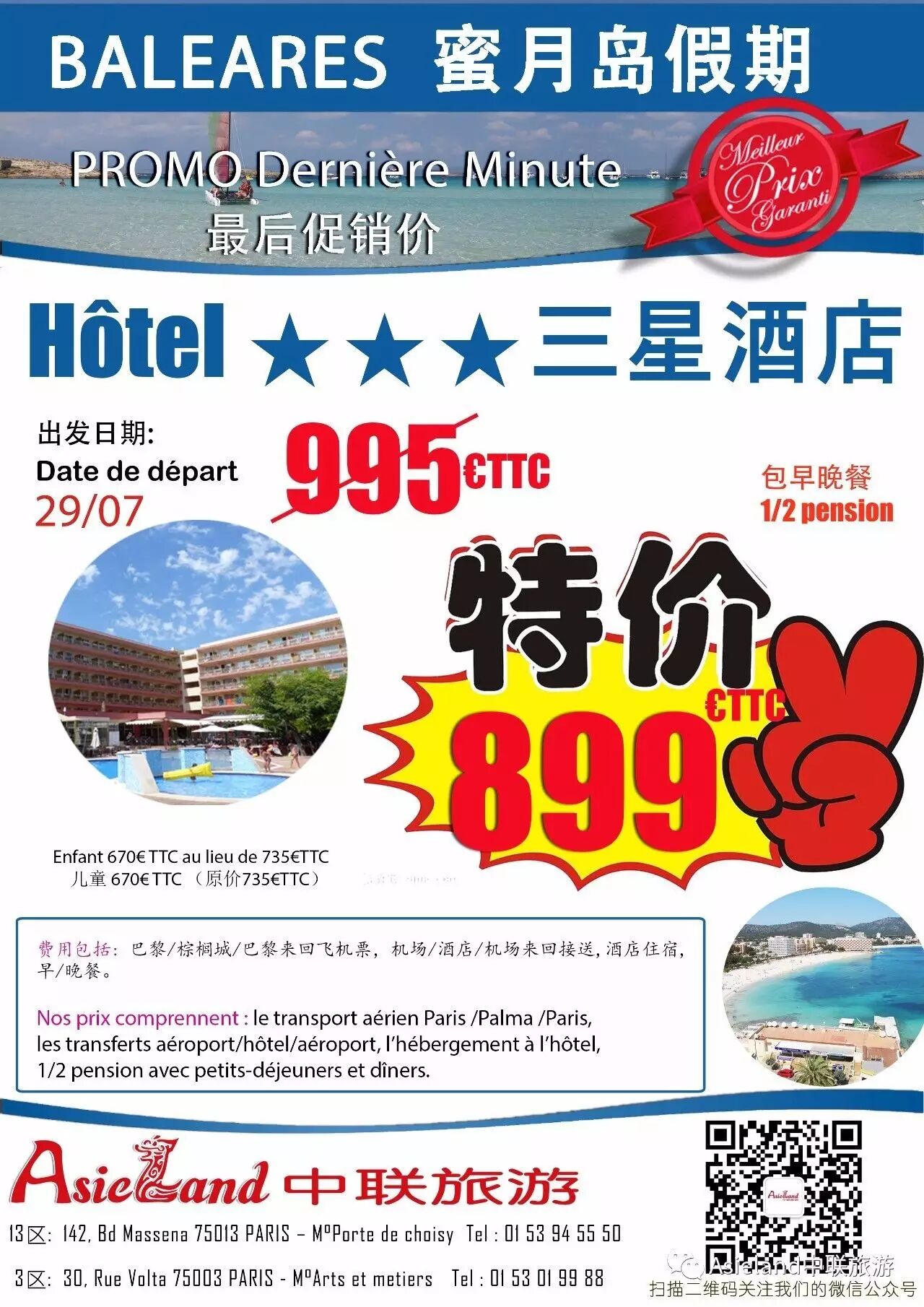 西班牙蜜月岛3星酒店  一星期假期 含税价899欧元!(原价995欧元)