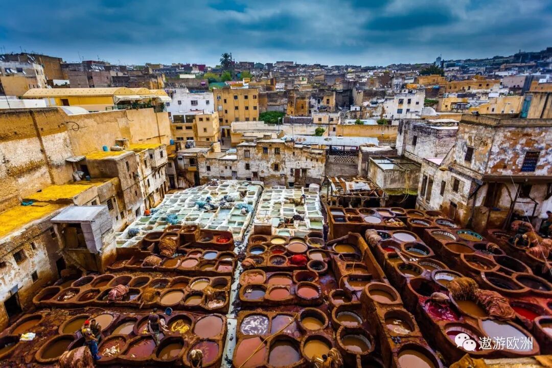 酒店早餐后参观被美国著名杂志(Traveler)评为全球最浪漫的10大城市之一的九世纪的【菲斯古城】.人们仿佛回到了一千年前,毛驴仍是百姓主要交通工具,探访那里的中古世纪老城区(1981年被联合国教科文组织 UNESCO列为世界文化遗产)中的BouInaniamedersas (古兰经经学院)】、【Nejjarine 泉】、【伊德里斯陵墓(MoulayIdrissZaouia)】(古都修建者)和【世界第一所大学---卡拉维因大学(Qarqouiyyin)外观】,【布日卢蓝门(外观)】是联合国重点保护文物,参观驰名于世各种各样手工艺品作坊:铜盘,地毯,染坊等,城内随处可以看到镶贴着蓝色马赛克的建筑或室内装饰及商店中陈列的马赛克工艺品。后前往摩洛哥伊斯兰古都城梅克内斯,古城墙雄伟壮观,以有「胜利、凯旋」之意【曼索尔城门】( Bab Mansour)闻名于世;并参观【摩洛哥皇家马厩粮仓】。接下来前往参观古罗马北非遗迹【沃鲁比利斯城】,据记载,公元1世纪时,这里曾经是一座繁华的城市,整个城市呈现出一派欣欣向荣的景象。现在这里留有保存完好的凯旋门和剧场的白色石圆柱。甚至连古城的街道、居民住房、油磨房、公共浴室、市场等都依然清晰可见,这里还有许多镶嵌式的壁画;之后前往舍夫沙万(或得土安入)住酒店休息。