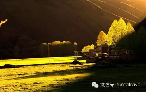 甲居藏寨,由红黄蓝三原色调配出的一个多彩世界,高原特有的蓝天白云,白色的藏寨,五彩的经幡,黄遍的层林以及红透的梨叶,挂满枝头的苹果和悬满屋顶的玉米,热情淳朴的藏民,还有半山那间大窗户的房间,让人走进去就不愿意离开。