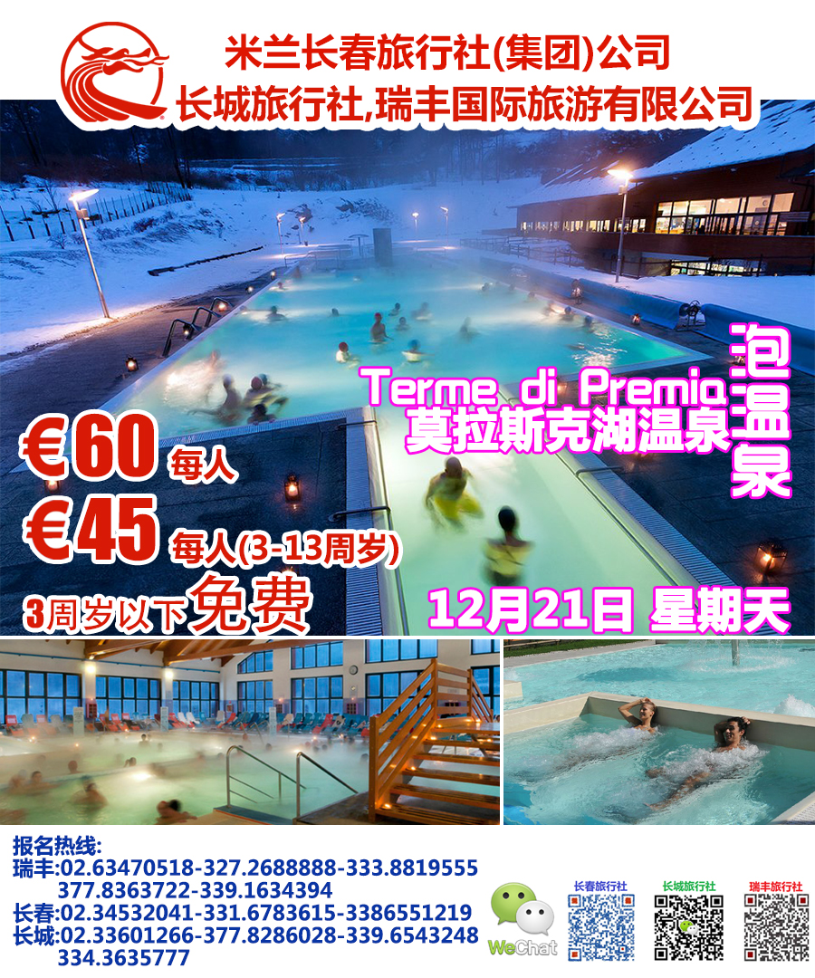 12月21日周日Terme di Premia莫拉斯克湖温泉一日游