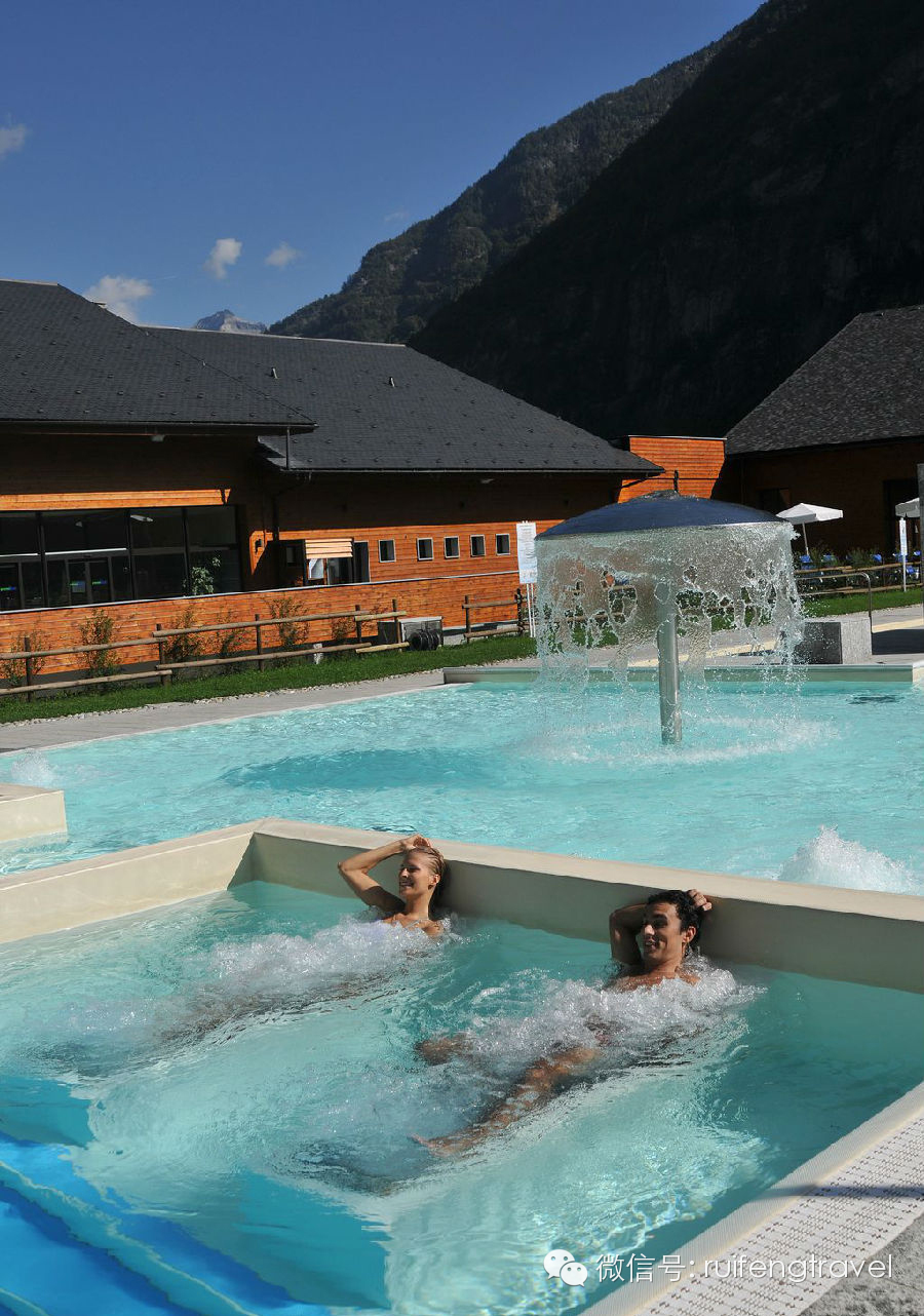 该温泉会馆是将现代化和天然融为一体的场所,在海拔800米以上地方依山而建。它位于美丽的阿尔卑斯山谷之中,周边是风光明媚的山林乡野。有别于以往,该温泉会馆对温泉的开发与利用更上一层,为传统的泡汤注入新的健康养生概念,现代温泉玩法可以说是五花八门,它具有温泉水疗,温泉游泳池,温泉按摩,温泉桑拿应有尽有。水质晶莹滑爽,含有对人体健康有益的微量元素,是一种罕有的硫酸钙高温矿泉,含量为1414毫克/升,享有返老还童泉之美誉。