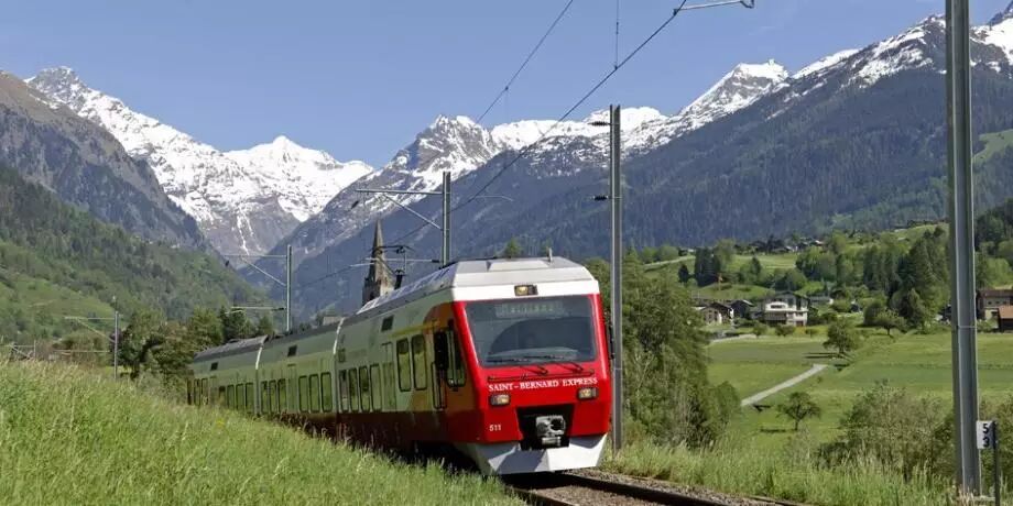 勃朗峰观光快车(Mont-Blanc Express) 穿越野性的Trient峡谷后上坡登上霞慕尼(法国)令人叹为观止的高山,游客会看到瀑布轰然而下、雄伟的高山峭壁岿然耸立。荫郁的树林、温馨的小屋彼此相间并最终延伸到欧洲最高峰勃朗峰的宏伟冰川。