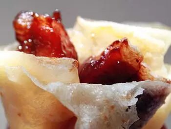 原料: 普通面粉250g、热开水125g、油、五花肉、洋葱、红砂糖、蚝油、蜂蜜