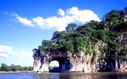 象鼻山原名漓山,因酷似一只站在江边伸鼻豪饮漓江甘泉的巨象而得名,被人们称为桂林山水的象征。广西的另一座名山猫儿山,也因形状似猫而得名。