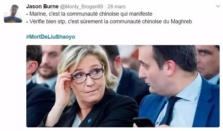 ▲ -Marine, 是中国人在举行示威 -你查查清楚哦,这一定是从北非来的中国人
