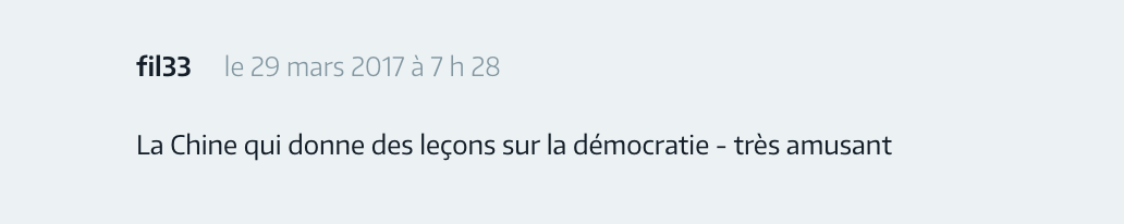❸ On ne peut que noter l'ironie de voir la Chine demander plus de clarté sur la violence policière. C'est vraiment l'hôpital qui s'fout de la charité. ▲ 人们会发现中国要求暴力执法的“透明度”真是讽刺啊,这可真是“五十步笑百步”啊!C'est vraiment l'hôpital qui s'fout de la charité.(是法国谚语,意为“五十步笑百步”)