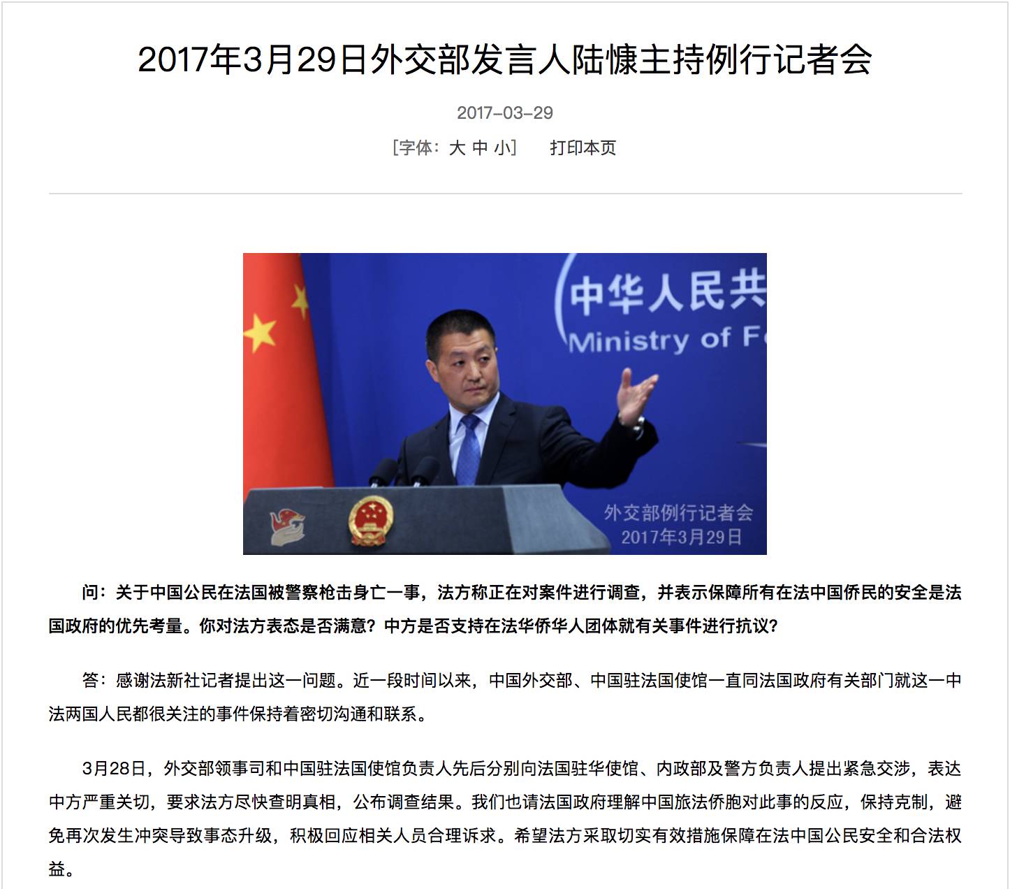 3月29日中国外交部发言人陆慷在例行记者会上答法新社记着问。