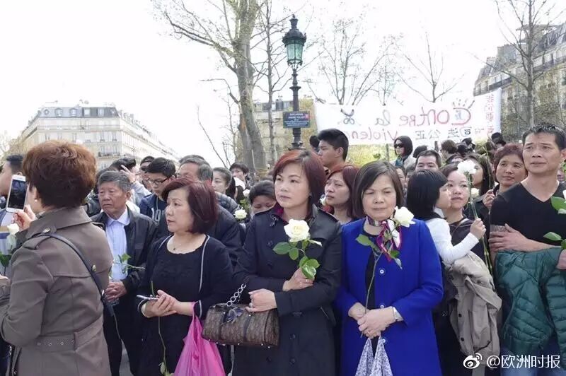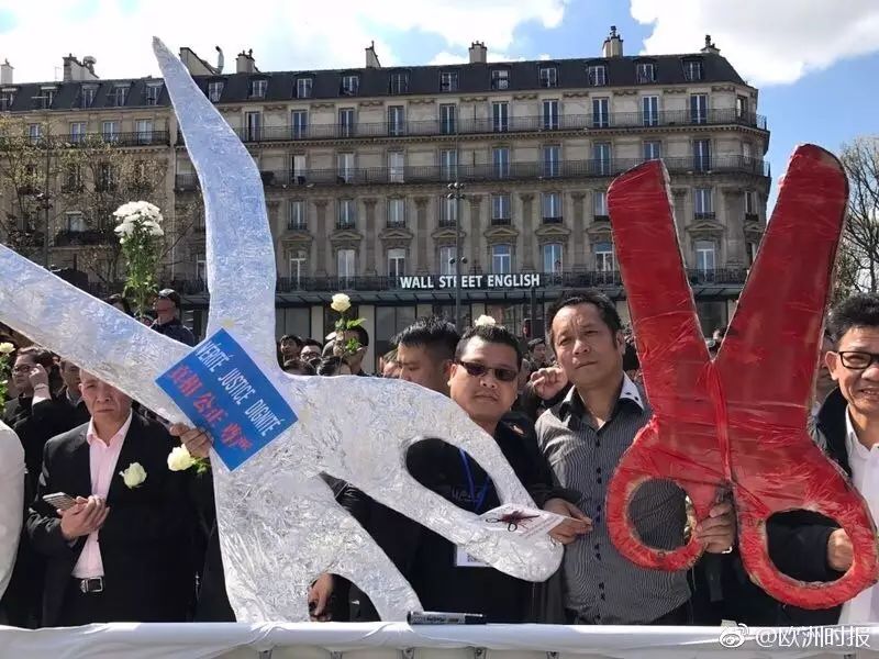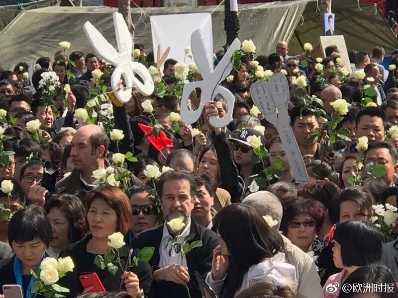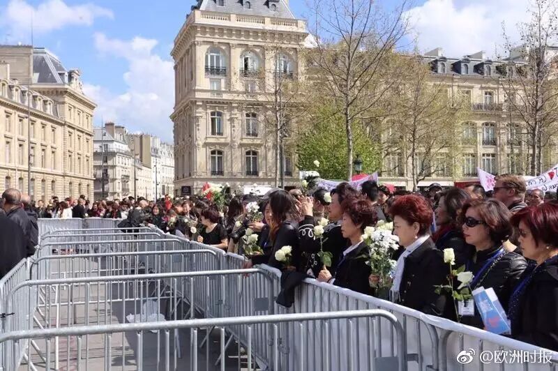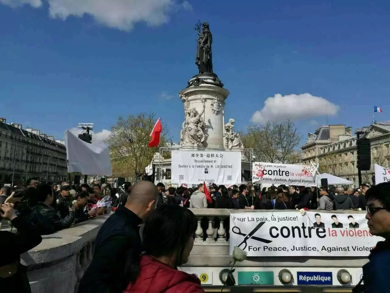 法国当地时间4月2日下午,在获得法国政府预先批准的情况下,数千位华人在巴黎共和广场举行合法集会,悼念被法国警察枪击致死的旅法侨胞。