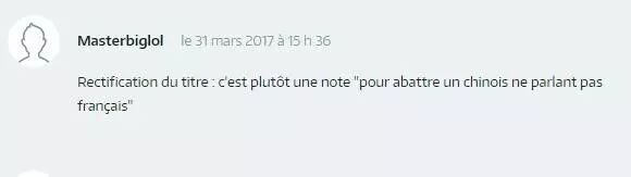 Masterbiglol:标题应该更正:这更像是一份“为打死一个不会说法语的中国人”的文件。