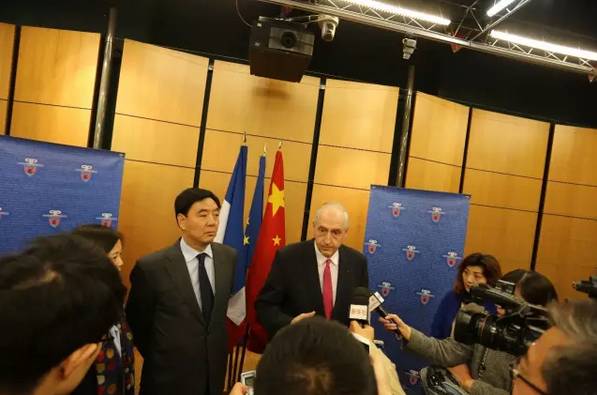 翟隽大使、卡多局长会见记者。图片来源:欧洲时报