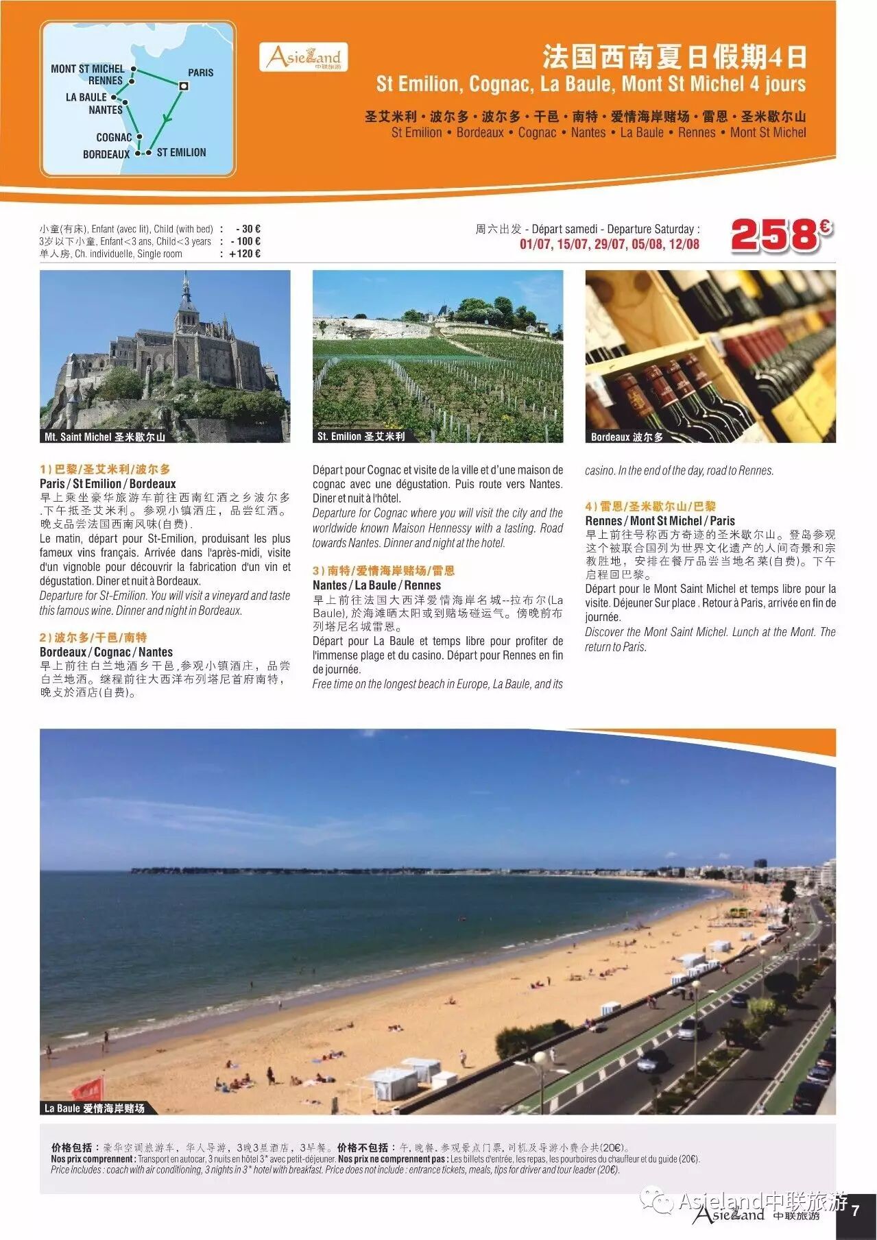 出发日期 Départ:15/07、29/07、05/08、12/08