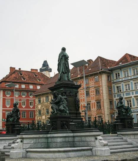 格拉茨一词来源自于斯拉夫语,意为小城堡,格拉茨也正是由城堡山上的一座堡垒发展而来的。格拉茨在奥地利历史上的地位十分重要,是奥地利第二大都市,也是施泰尔斯塔特州的首府。其东南部得天独厚的资源和宜人的气候成为一个理想的休闲城市。美丽绵长的穆尔河穿城流过,将格拉茨分隔为新、老两个城区,老城区充满浪漫风情的钟楼古堡、典雅美观的文艺复兴庭院与新城区狂放前卫的时尚建筑共同投影在穆尔河的怀抱中,互相映衬,和谐唯美,古典优雅和现代时尚的融合在这里得到了最经典的诠释。