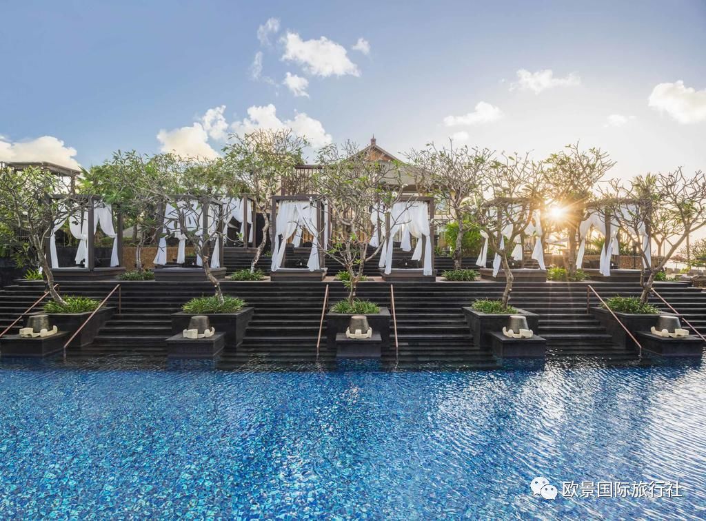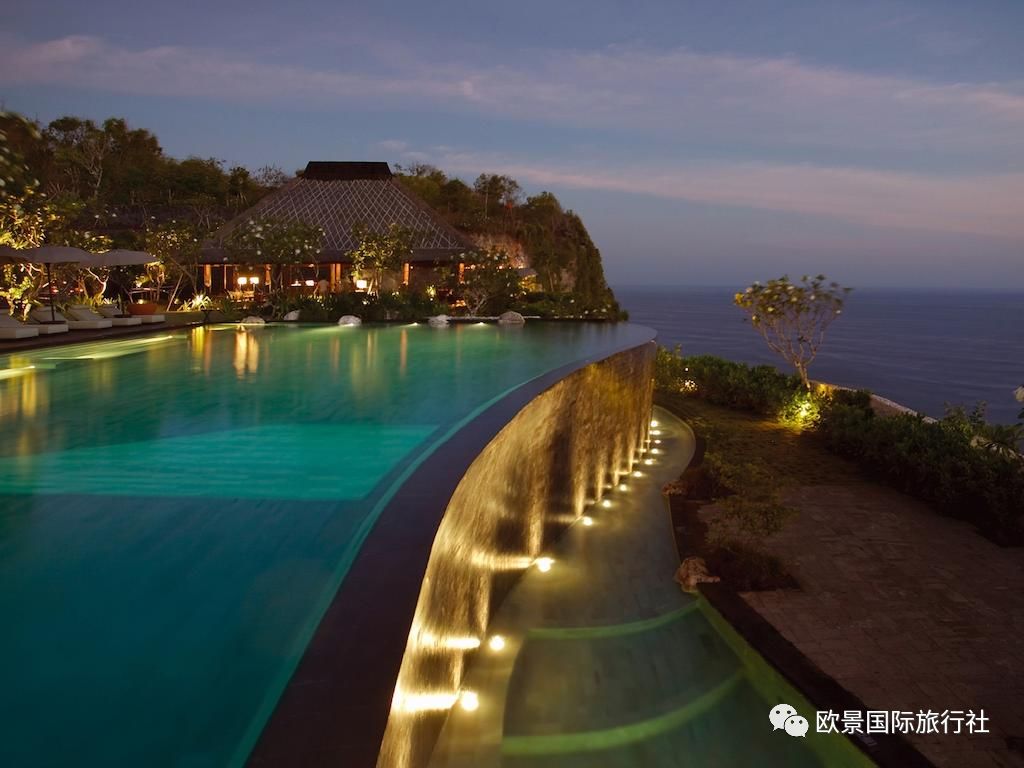 3. 度假酒店位于悬崖之上,好似一座中世纪城堡,秘密隐蔽在城墙之中。酒店布置的非常巴厘,在悬崖畔的无边泳池望着大海,无敌美景。房间内配有B&O音响,如果是蜜月入住会有玫瑰+鸡蛋花的花瓣浴缸。悬崖和海洋间的白沙海滩处于珊瑚礁的保护下,无论从地面还是海上都无法到达。唯一的办法是乘坐度假酒店内部的斜长电梯来到海滩及海滩俱乐部。由于在这片海角上还不存在人类的足迹,因此经常可以看到成群海豚出没,游客可通过海景别墅和海滩观赏。 度假村地处海拔150米处,享有印度洋(Indian Ocean)一览无余的景致,提供带私人日光浴平台和小型泳池的奢华别墅。客人仅可通过度假村的倾斜式电梯前往1公里长的海滩。 度假村的宽敞别墅均采用传统的巴厘岛风格装饰,配有铂傲牌影音系统,设有私人庭院景落地玻璃浴室。 客人可以在24小时健身中心锻炼身体,或在spa享受按摩服务并观赏一望无际的海景。度假村提供免费WiFi和停车场。前台可安排旅游和观光活动。度假村亦提供海洋景无边游泳池以及24小时管家服务。 餐厅供应创意现代意大利美食,融入了意大利常驻主厨的精致技术和艺术创意。餐厅亦供应其他国际美食。度假村的其他餐饮场所包括供应新鲜海鲜的餐厅。夫妻/情侣特别喜欢这家住宿的位置,为两人住宿体验给出了9.1分