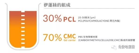 PCL是洢莲丝的关键成分,数十年已做为为骨科用植体、手术缝合线、脸部填充物等可被人体吸收的植体,后来因其有助于合成胶原蛋白的特性,后来为科学家研发,运用于美容医学抗老的范畴上。