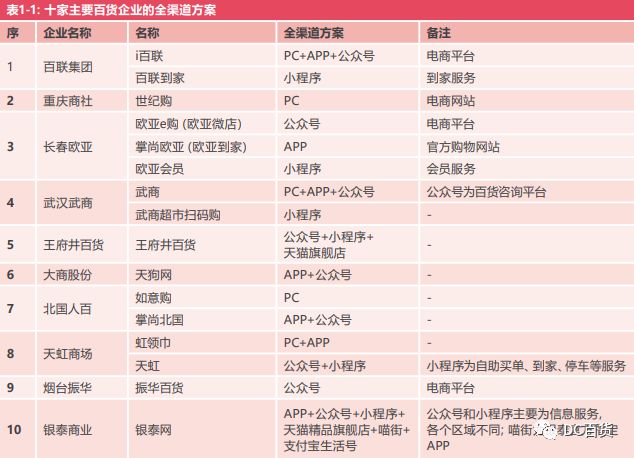 首先在销售渠道上,各个百货店(尤其是中大型百货店)都开始和电商融合 资料来源:中国百货商业协会整理分析