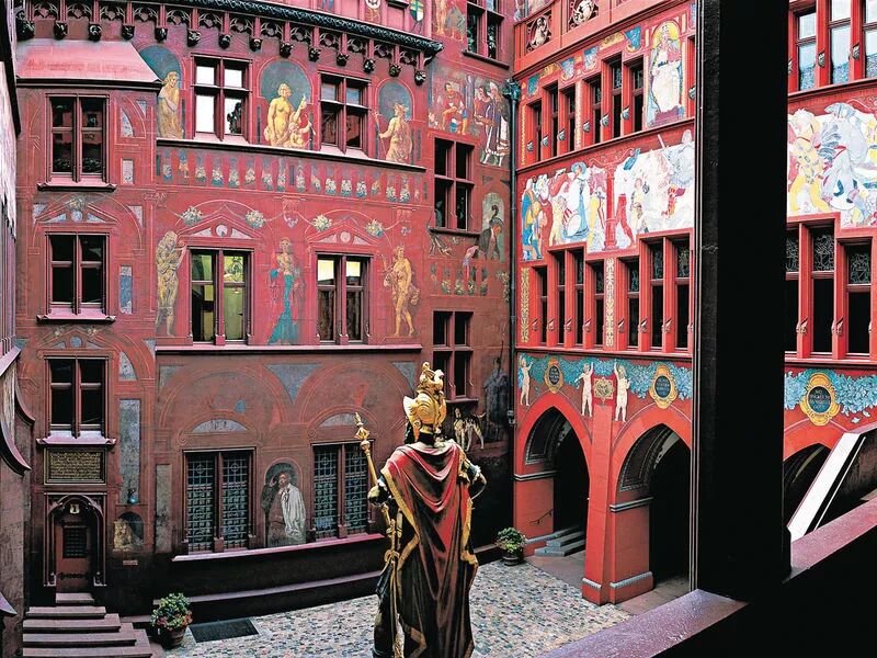 巴塞尔市政厅建于16世纪,赭红色的高大门墙上,有瑞士古代著名画家绘制的精美彩画。市内的金星饭店是瑞士全国最古老的饭店,建于1412年,绘有晚期哥特式的彩色图案。巴塞尔美术博物馆在欧洲颇负盛名,馆内陈列有瑞士中世纪著名画家和雕塑家的作品和大批现代画。