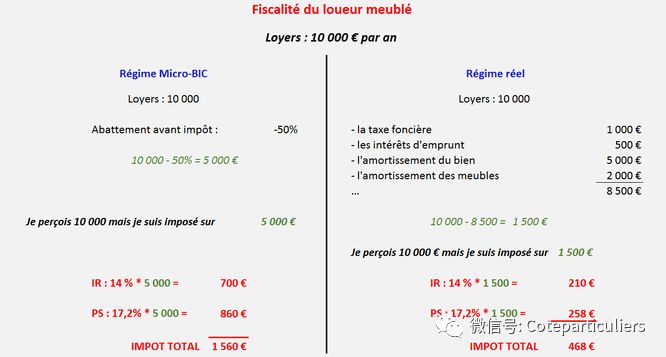 这是一种实销实报的税制,以房租收入扣除实际花销作为征税基础。如果业主贷款比例比较高,利息占比比较大,或者其他费用(比如装修费用)比较高的情况下,可以选择这个税制。如果年Revenues Fonciers不满15000欧,业主可以在两种税制中自行选择,但是要注意,一旦选择了Regime Réel,则三年内不得更改为Micro Foncier。