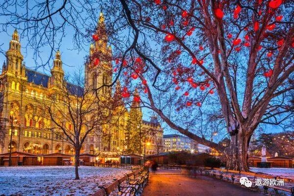 维也纳市政府圣诞市场是每年冬季的代表性活动。全市大大小小几十个圣诞村或圣诞市场,但没有一个可以更具有代表性。一眼就看到的维也纳市政府大楼和对面的国家话剧院此时都会各种灯光包围。这里有全市最高的圣诞树,通常为28米。节日的气氛非常浓郁。