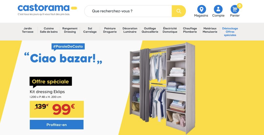 Castrorama 在法国有101家店,超过11000名员工和合作伙伴,每年服务4900,0000名顾客,可谓是经验丰富。致力于推广更简单,更实用,更具创新性和更环保的DIY装修。