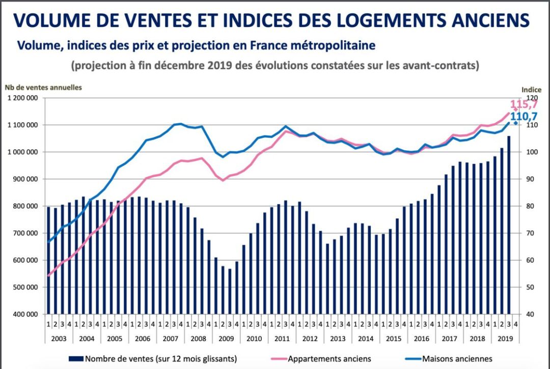 2019年全法国成交量更是突破了百万达到历史最高,与2018年同期相比增加了10%。
