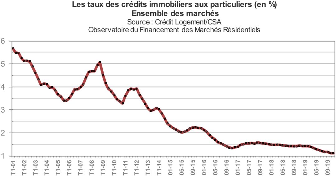 朋友的一句话说的好,傻子才不买房。下图为从2001年-2019年的法国贷款利率指数: