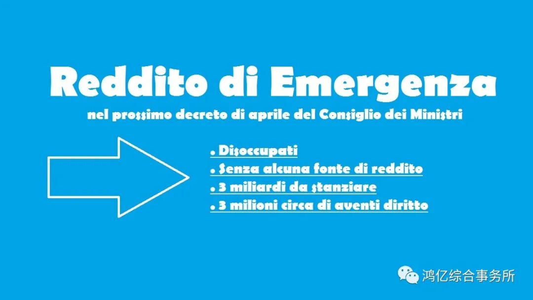 每户家庭可获取为期三个月,每月400至800欧元的危机津贴(取决于家庭成员数量),要求家庭收入低于可申请的津贴金额,移动资产(如银行存款)低于1万(家庭总移动资产低于2万),ISEE指标低于1万5。