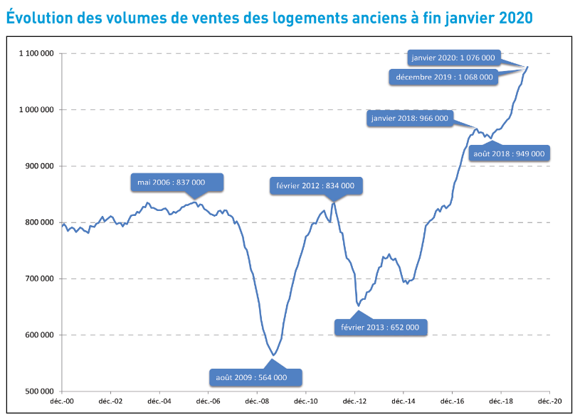 法兰西岛(Île-de-France)的交易量在2019年增长了11%,并在2020年1月31日达到1,076,000笔交易。