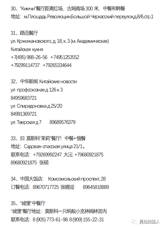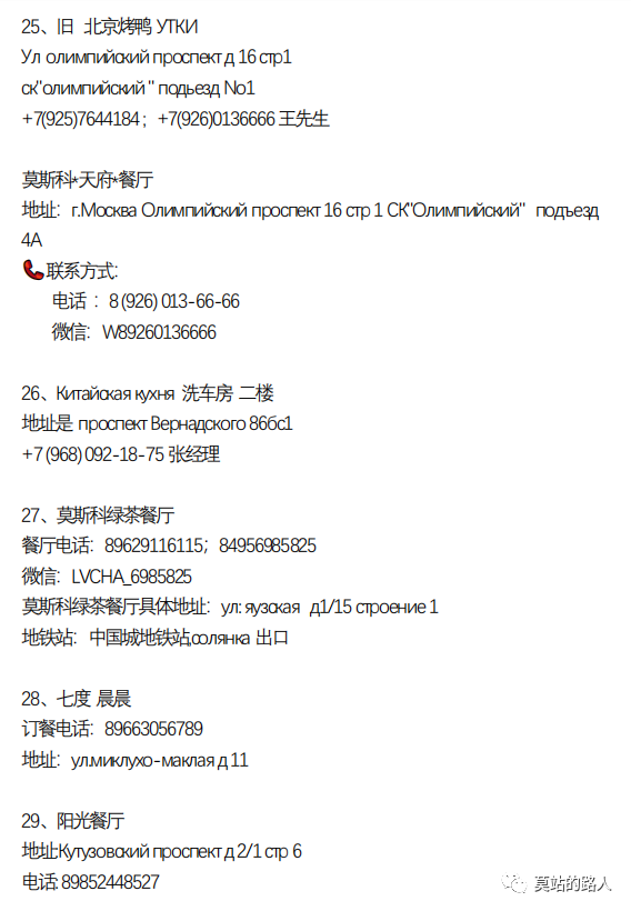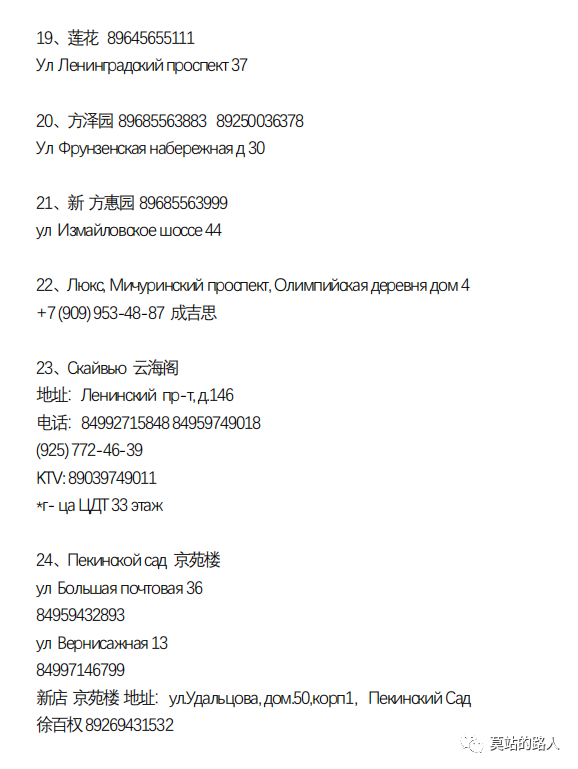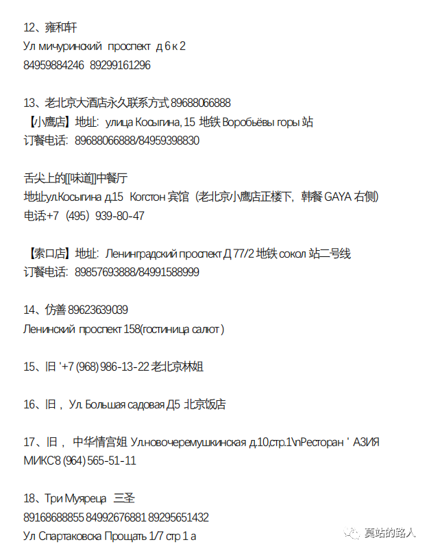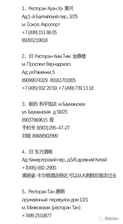 在莫斯科你还在为去哪吃饭发愁,这里有全部的中国餐厅地址!