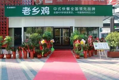 比如安徽最大的连锁快餐品牌老乡鸡,就在门头上展示了自己的门店数量。